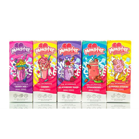 Жидкость Monster Shake Hard 50 mg Вкусы: Клубничный милкшейк Вишнёвый милкшейк Ягодный милкшейк Клубнично-бананановый милкшейк Ежевичного-малиновый милкшейк Ванильный милкшейк Манговый милкшейк