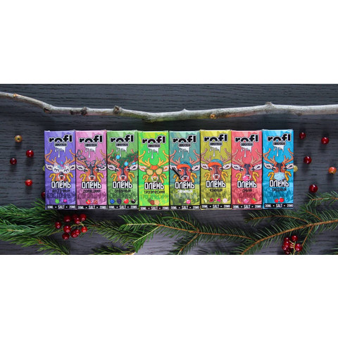 Жидкость Олень salt by rofl 30 мл 20 мг strong Вкусы: Восточный - Виноградный компот Северный - Ягодный морс с нотками хвои и льдом Таёжный - Жвачка с лесными ягодами Тропический - Ананас со льдом Южный - Арбузно-яблочный сорбет с малиной Дикий - Жвачка з