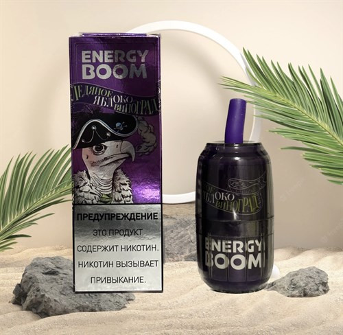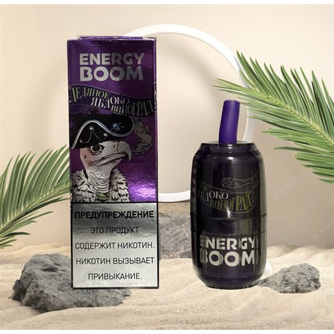 Energy Boom - 12000 затяжек Вкусы: Клубника-банан Жвачка Пина Колада Черника Яблоко-виноград Манговое мороженое Вишнёвая кола Малина-лимон Энергетик Арбуз-холодок