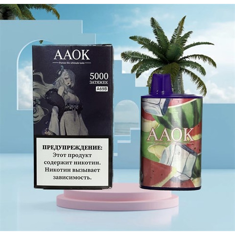 AAOK с голограммой на корпусе - 5000 затяжек Вкусы: Ананас-яблоко Вишнёвая кола Яблоко-персик Киви-маракуйя-гуава Киви Вишня-персик-лимон Персик Арбуз-дыня