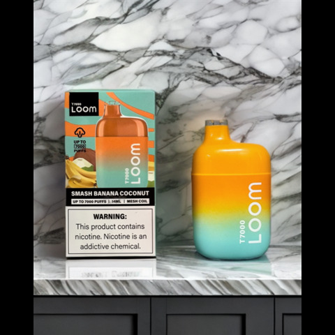 Loom T 7000 - 7000 затяжек Вкусы: Личи-апельсин Маракуйя-киви Клубника-банан Алое-виноград Клубника-холодок Кофе Мята Арбуз Банан-кокос Клубничное мороженое Кислое яблоко Черника