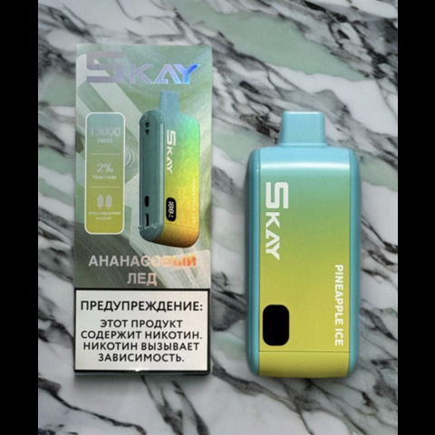 Skay 13000 - 13000 затяжек Вкусы: Ананас-холодок Клубника-арбуз-холодок Двойное яблоко Арбуз-холодок Виноград-клюква Черника-вишня Банан-холодок Виноград Сочное манго Персик