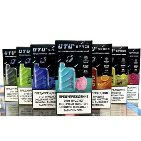 UTU Space - 5000 затяжек Вкусы: Энергетик Персик Розовый лимонад Клубника-холодок Чёрная смородина Красный мохито Виноград Сахарная вата Черника Апельсиновый сок Кислое яблоко Лимон-вишня-холодок