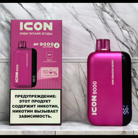 Icon 9000 затяжек Вкусы: Арбуз-лайм Вишнёвая кола Черника-гранат Мята Голубая малина-холодок Клубника-вишня Манго-персик-арбуз Фруктовый лёд Лимон-лайм
