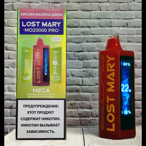 Lost Mary MO 20000 PRO затяжек Вкусы: Черника-малина-холодок Вишня-лайм-малина Двойное яблоко Виноград-холодок Зелёное яблоко-маракуйя-киви Ледяной чай Жасмин Лимон-лайм Мята ледяная Мятный морской бриз Кислая ежевика-черника Ананас-холодок Арбуз-вишня Ар