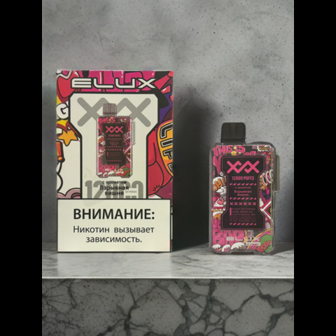 Elux XXX 12000 затяжек Вкусы: Клубника-киви Фруктовый фреш Ежевичный чай Дикое яблоко Фантазия Черничный энергетик Фруктовые леденцы Розовый лимонад Вишня Тропический смузи Мятный Мохито Виноград Экзотическая смесь Табак кофеиновый Сливочный пломбир