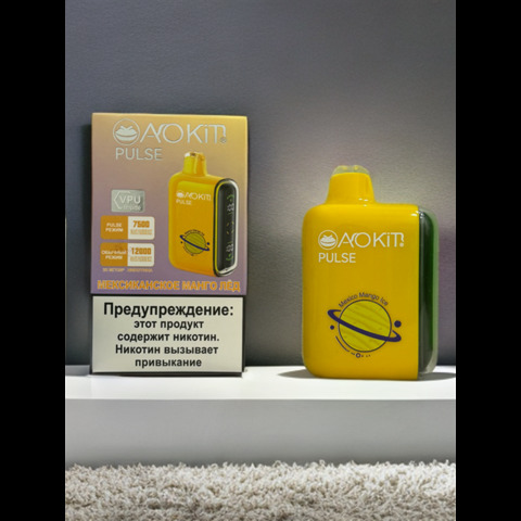 Aokit Pulse 12000 затяжек Вкусы: Зелёный чай Табак кофеиновый Киви-маракуйя Персик-холодок Кола-холодок Мексиканское манго Мята Банановое мороженое Виноград-холодок Кислое яблоко-холодок