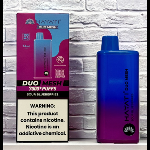 Hayati Duo Mesh 7000 затяжек Вкусы: Клубника-арбуз-лайм Гуава Кислые ягоды Черника-гранат Лимон-лайм-чёрная смородина Кислое яблоко-черника Клубнично-арбузная жвачка Звёздчатый фрукт-шелковица-лимон Клубника-грейпфрут Тропический пунш Кислое яблоко Красна