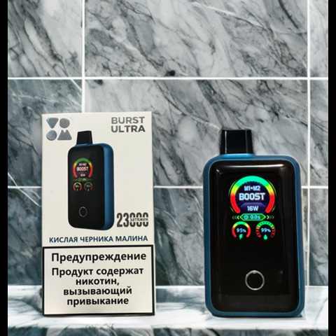 Voom Burst Ultra 23000 затяжек Вкусы: Голубика-арбуз жвачка Манго-холодок Персик-манго-арбуз Голубика-киви Виноград-холодок Кислая черника-малина Двойное яблоко Банан-холодок Розовый лимонад Клубника-арбуз Вишня Кислое яблоко Клубника-манго Черника-малина