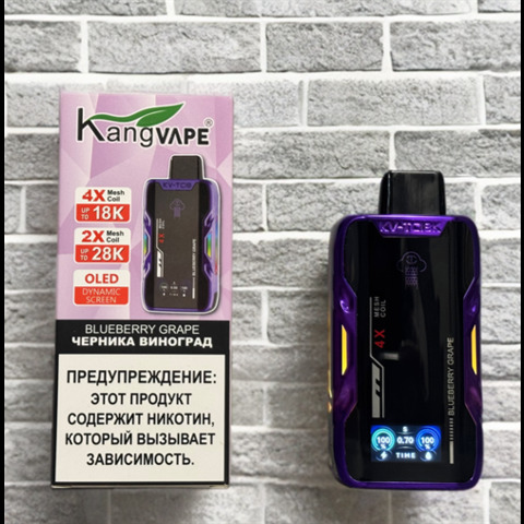 Kangvape 28000 затяжек Вкусы: Кислое яблоко Розовый лимон Виноград-холодок Клубника-киви Ананас-холодок Персик-манго-арбуз Клубника-манго Черника-виноград