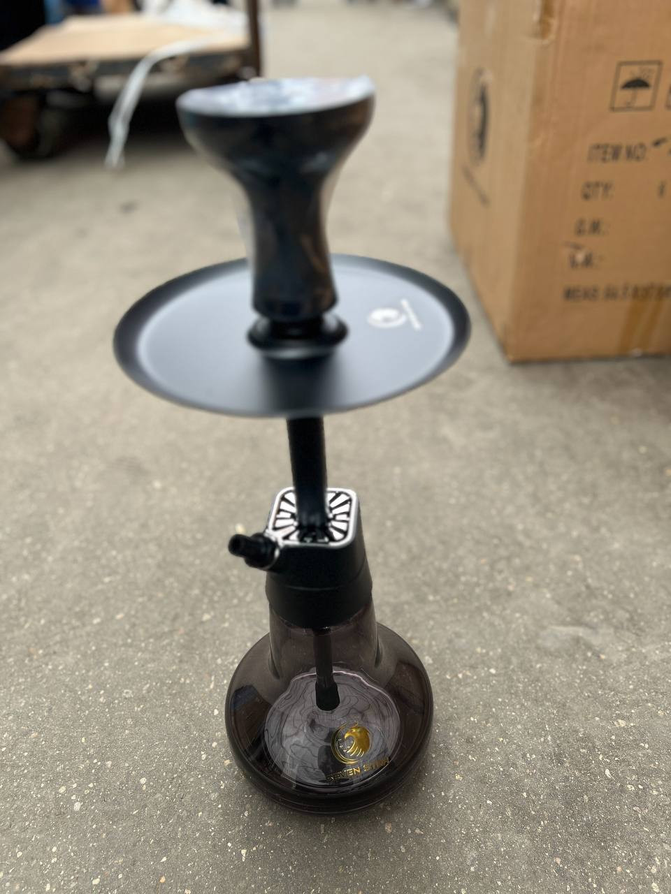 Кальян сразу идет в полной комплектации с шахтой, колбой, мундштуком, шлангом и блюдцем, так что ничего докупать не надо. А еще его удобно брать с собой — длина кальяна всего 41,5 см.