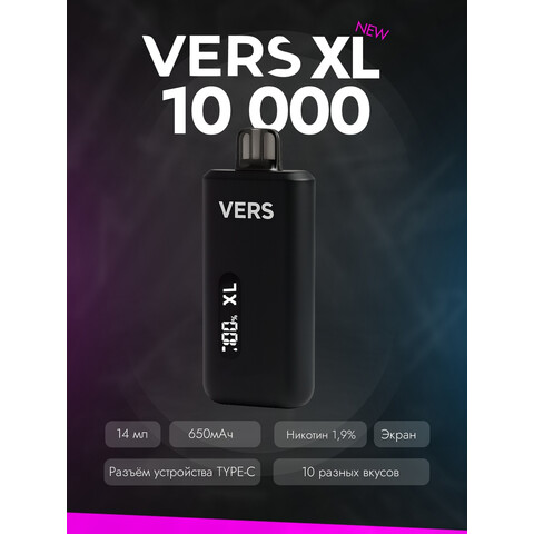 VERS XL 10 000 — компактный и мощный одноразовый вейп с ресурсом на 10 000 затяжек, насыщенными вкусами и удобством использования без обслуживания.
