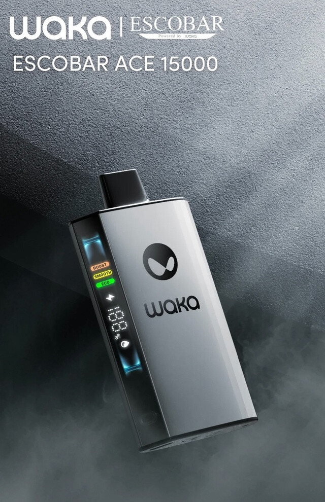 WAKA ESCOBAR ACE – мощный POD на 15000 затяжек с насыщенными вкусами, встроенной зарядкой Type-C и экраном уровня заряда. Идеален для тех, кто ценит качество и стиль.