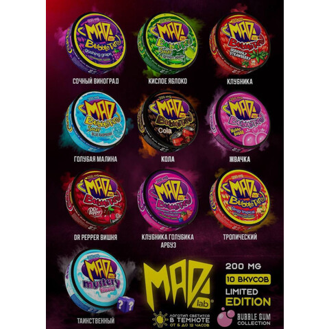 Жевательный табак MAD LAB – это стильное и современное решение для ценителей крепкого никотинового эффекта и яркого вкусового разнообразия.