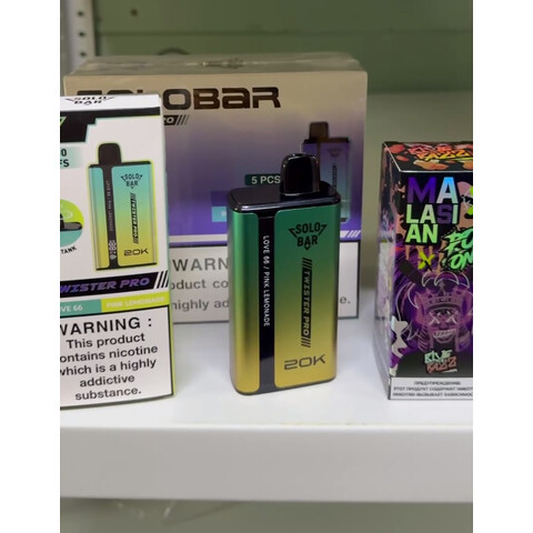SOLOBAR TWISTER PRO 20000 – мощный одноразовый вейп с ресурсом до 20 000 затяжек, насыщенными вкусами и удобным форм-фактором для длительного комфортного парения.