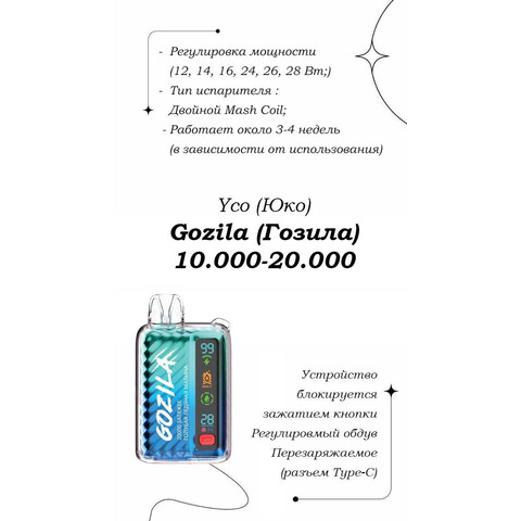 Закажите GOZILA 20000 затяжек прямо сейчас – наслаждайтесь вкусным парением и быстрой доставкой по всей России и СНГ.