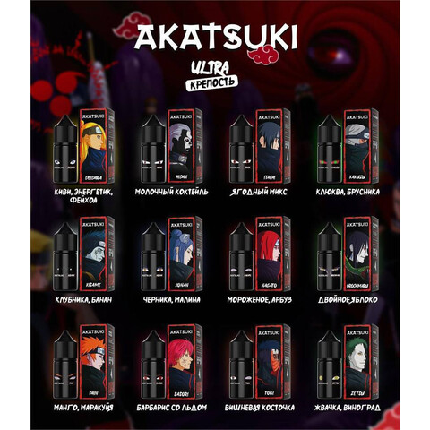 AKATSUKI ULTRA 20MG 30ML — премиальная жидкость для POD-систем с ярким вкусом и крепостью 20 мг. Идеально подходит для ценителей насыщенного пара и мягкой тяги.