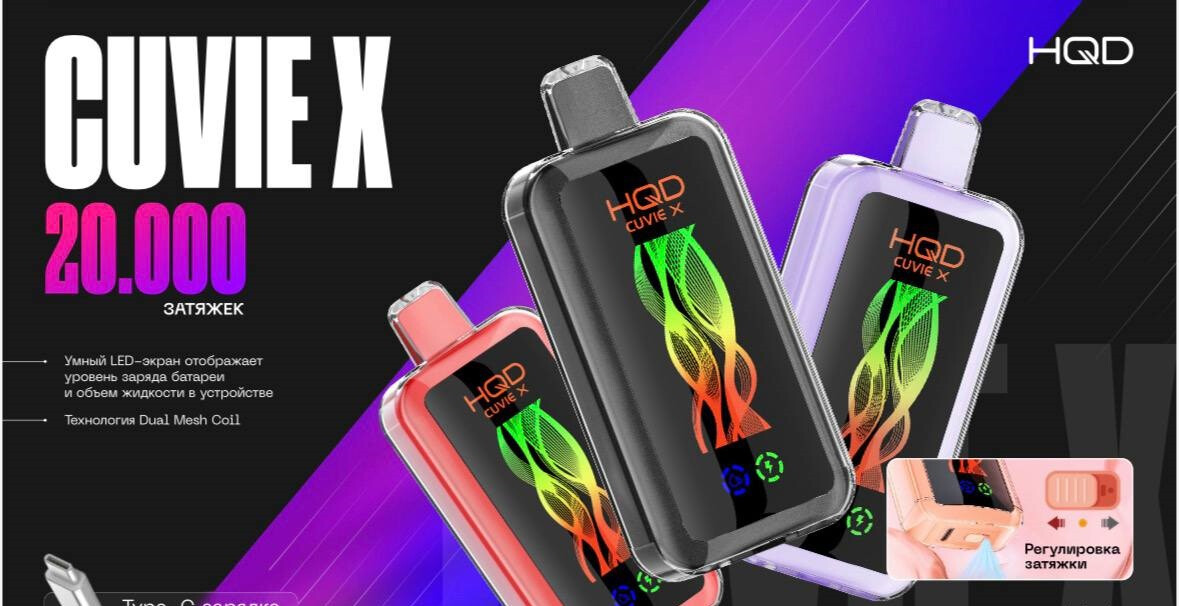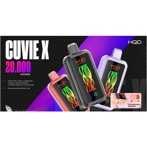 HQD CUVIE X 20000 затяжек — одноразовая электронная сигарета с яркими вкусами и высокой автономностью. Оригинальная продукция, опт и розница, быстрая доставка по России и СНГ.