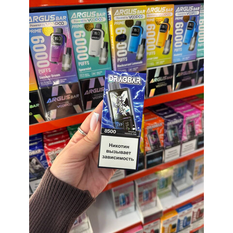Одноразовый вейп DRAGBAR 8500 — это сочетание мощности, стиля и надёжности. Устройство рассчитано на до 8500 затяжек, оснащено аккумулятором с USB Type-C и индикатором уровня заряда, что обеспечивает стабильную работу до последнего вдоха.