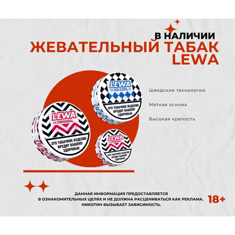 Жевательный табак LEWA — это современный никотиновый продукт, созданный для тех, кто ищет альтернативу курению. Компактные саше обеспечивают быстрое и чистое поступление никотина без дыма, золы и запаха.