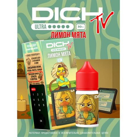Жидкость DICH TV Ultra — популярная линейка жидкости для электронных сигарет с яркими вкусами и стабильным качеством. Подходит для POD-систем и современных вейп-устройств, обеспечивая насыщенный вкус и комфортное парение.