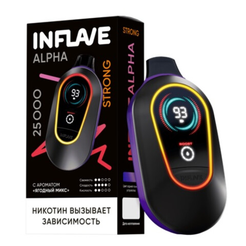 INFLAVE ALPHA 25000 Strong представлен в широком ассортименте вкусов — от классических фруктовых до освежающих миксов, что позволяет каждому подобрать идеальный вариант.