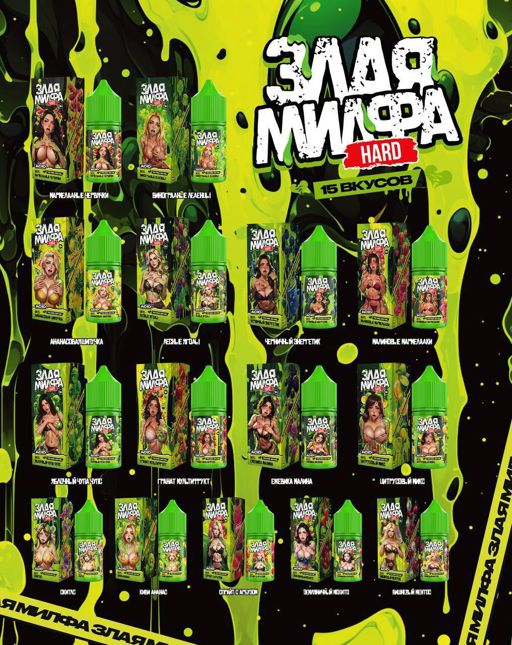 Купить жидкость Злая Милфа ACID — отличное решение для тех, кто ищет качественную жидкость для вейпа с насыщенными вкусами. Эта линейка пользуется популярностью благодаря оригинальным вкусам, стабильному качеству и хорошей совместимости с большинством устройств.