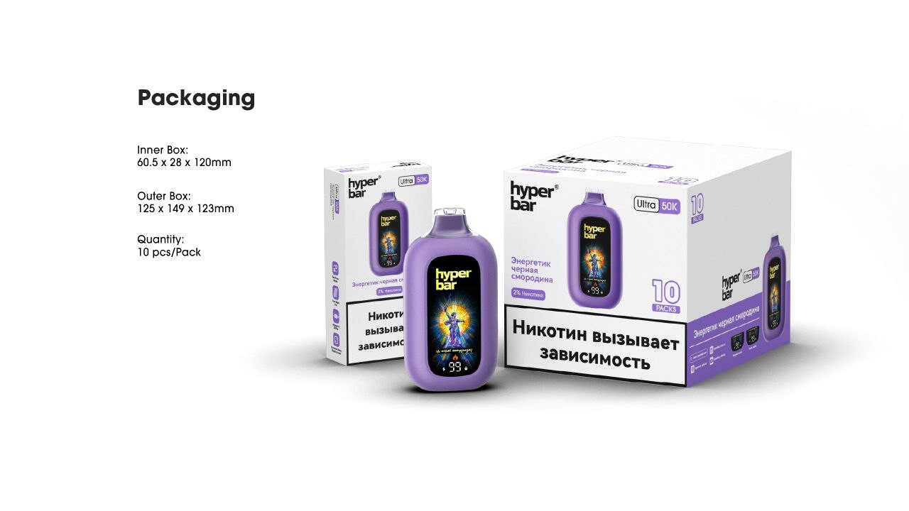 Hyper Bar Ultra 50000 — одноразовый вейп нового уровня с увеличенным ресурсом до 50000 затяжек. Подходит для розницы и оптовых закупок, отличается ярким вкусом и высокой автономностью.