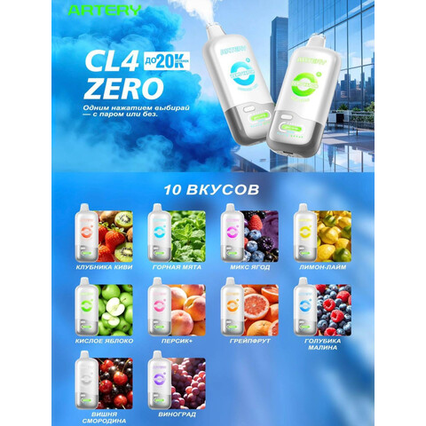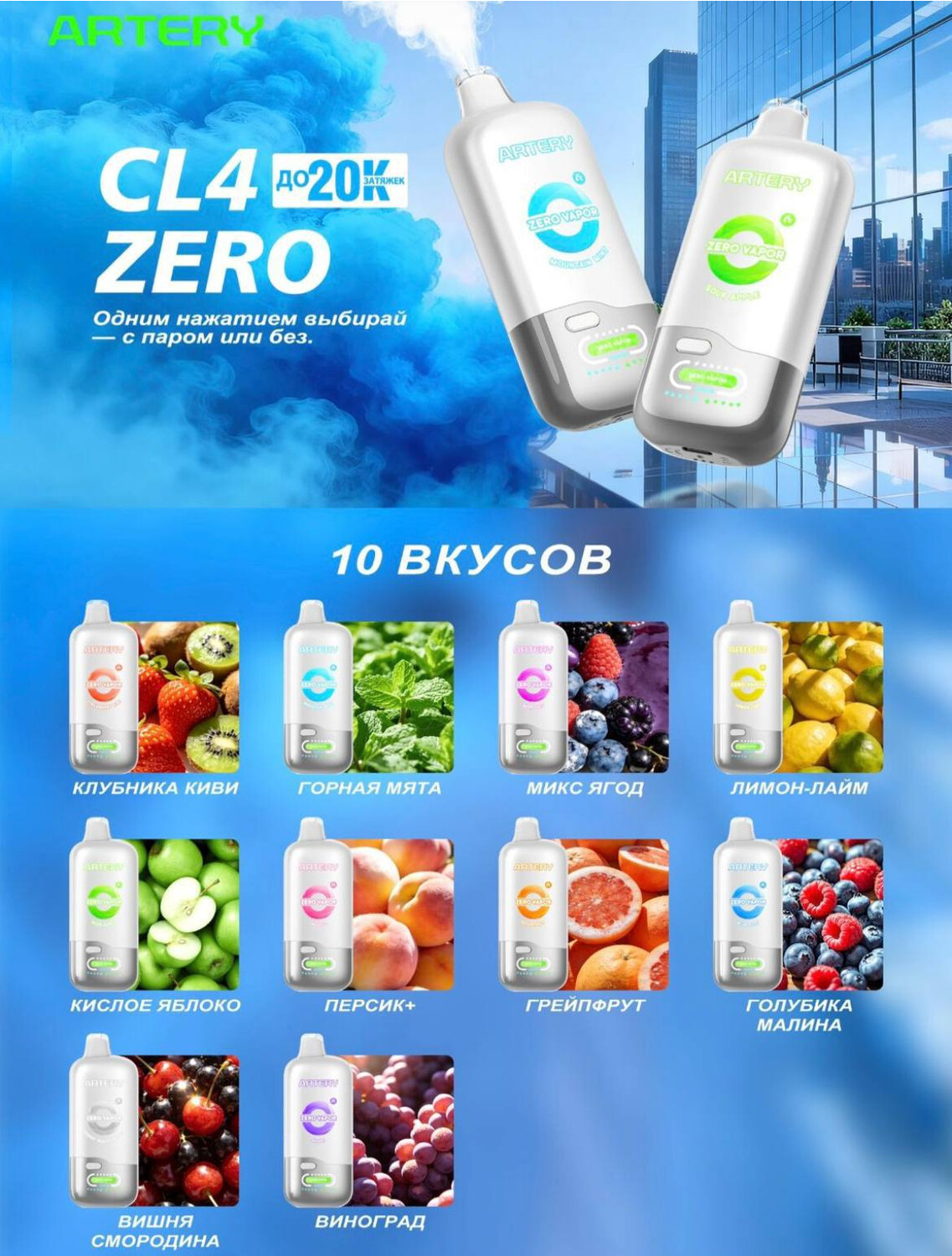Artery CL4 ZERO — современный одноразовый вейп на 20000 затяжек с яркими вкусами и удобным форм-фактором. Отличный выбор для ежедневного использования.